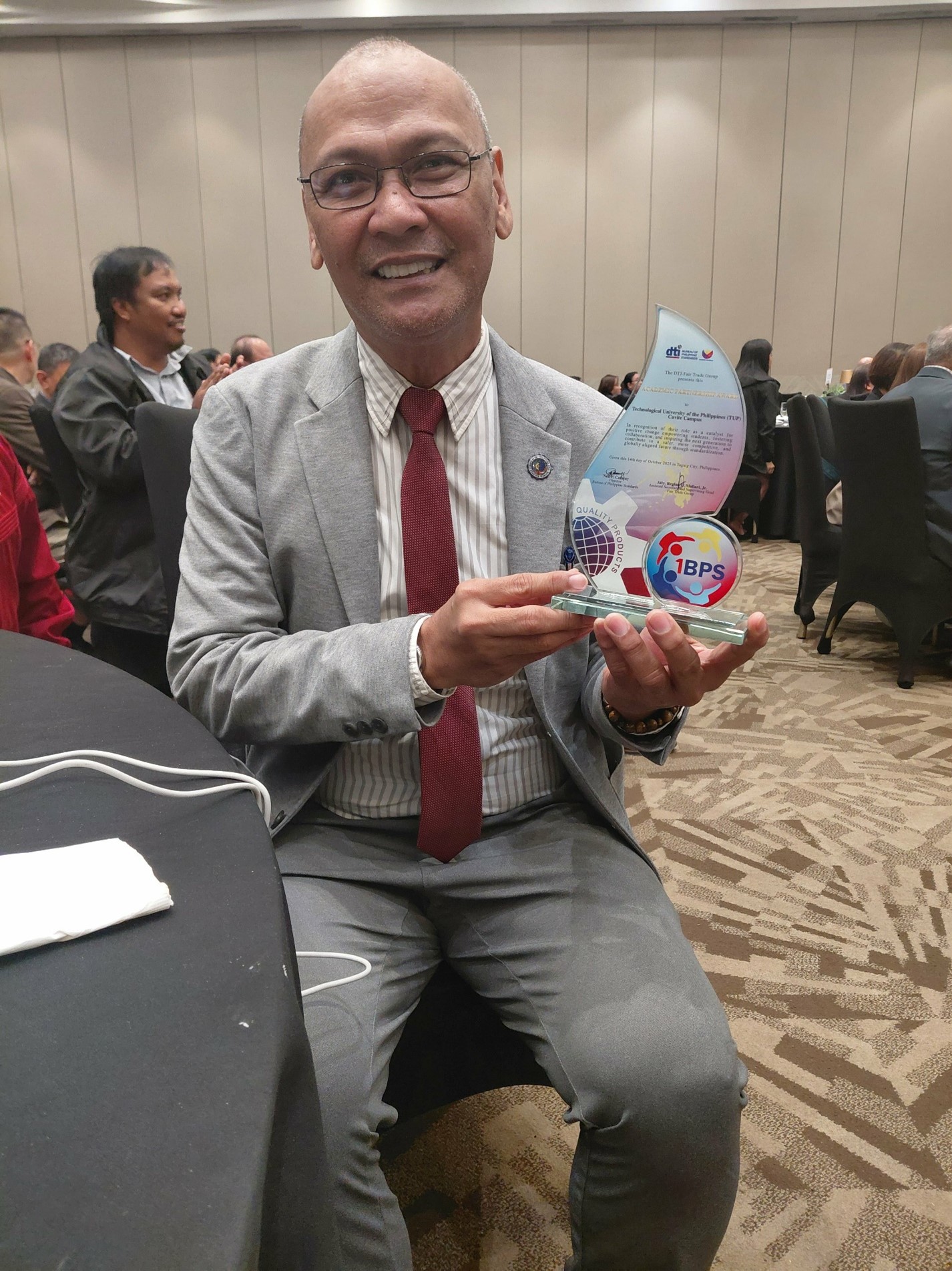 TUP President Dr. Ramos receiving the award on behalf of TUP Cavite